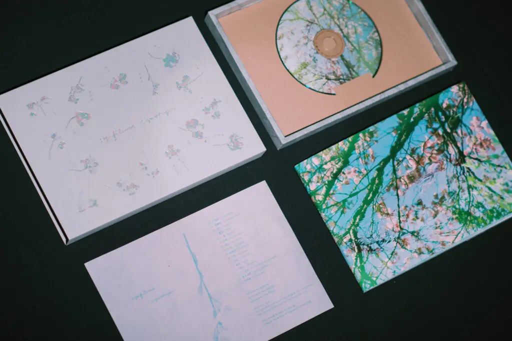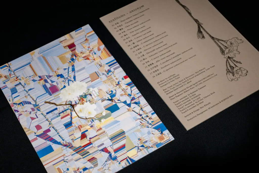 音楽の面を解説すると、本作は、前作『synonym』で録音されたピアノの音色を素材として解体・再構成(リワーク)したものです。8本のマイクで捉えた立体的な響きを、楽曲のイメージに合わせて取捨選択し、別の色や素材を織り交ぜることで、新しい姿へと変貌させました。Schole Recordsと縁のある作家陣もリワークに加わり、より多層的で幻想的な「夢の桜並木」が描き出されています。
