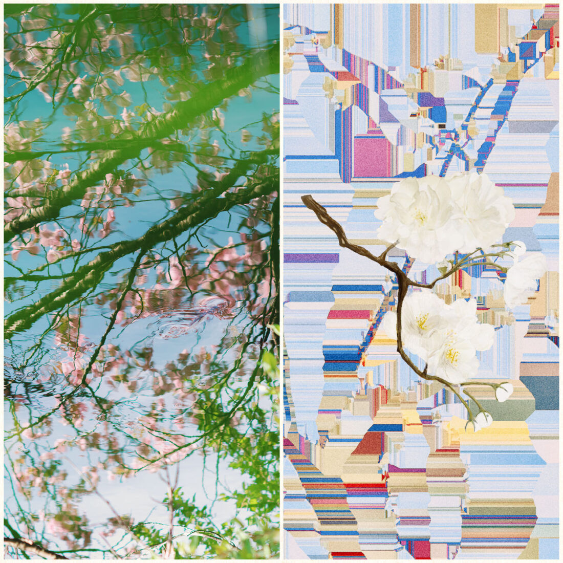 この「再構築」の試みは、視覚表現においてさらに深化します。本展では、現代美術家・高山夏希が、菊地のアートワーク集『antonym』と呼応するように制作した特別なコラボレーション作品を展示。 花が散り、葉が彩り、やがて美しい枝の骨格を見せる——。四季折々に姿を変える桜や自然の美しさに独自の視点を加え、未だ見ぬ新たな桜の姿を追求しました。